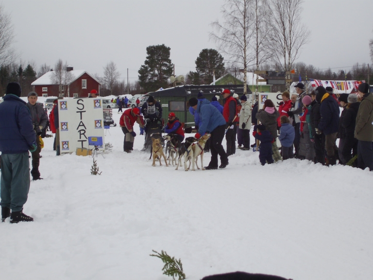 Tag 1 - Starts der 6-Hunde-Klasse, stahlblaue Augen als Beweis für das Huskyerbe trotz Schlappohren und Warten auf das entscheidende "GO"...